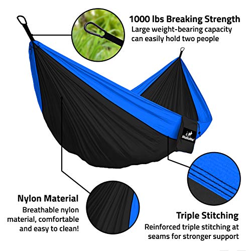 MalloMe Double & Single Portable Camping Hammock – Parachute Lightweight Nylon with Hammok Tree Straps Set- 2 Person Equipment Kids Accessories Max 1000 lbs Breaking Capacity – Free 2 Carabiners