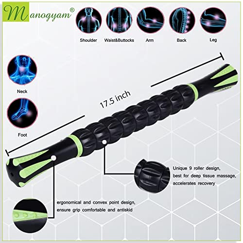 MANOGYAM Muscle Roller Stick | Massager | Tissue Massager | Muscle Roller for Painful Leg Cramps, Post-Workout Recovery, Deep Tissue and Trigger Point Massage Therapy, Full Body Stick Rolling Tool