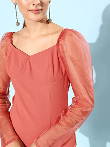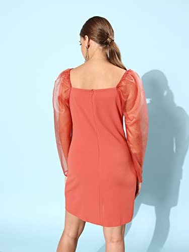 Women Casual Peach Colour Above Knee Solid Dress