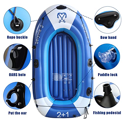 Marsports 3 Person Inflatable Boat – Thicken Inflatable Rafts with Air Pump Rope Paddle Repair Patch, 1,2,3 Person Fishing Boat Kayak for Adults and Kids (3 People)