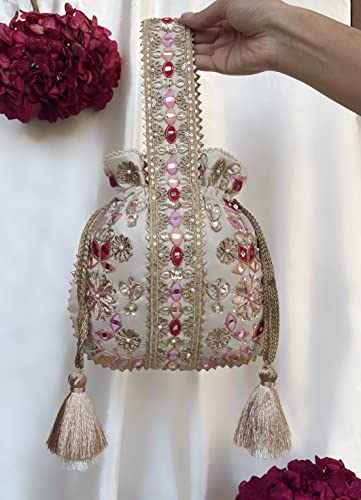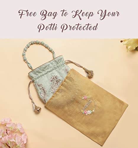 MASQ by Q-One Embellished Silk Potli Bag for Women and Girls – Exquisite Handmade Embroidery, Sequin, and Beads Work – Ideal for Parties, Weddings and festive season