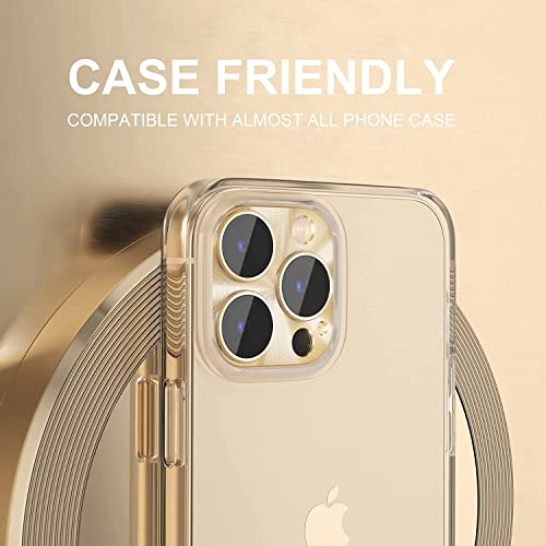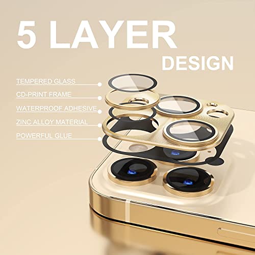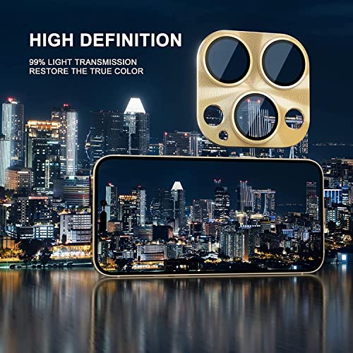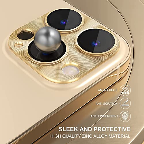 MAYA BALLE® Aluminum Alloy 3D Camera Lens Protector Compatible for iPhone 13 Pro/iPhone 13 Pro Max, [Anti-Scratch] Premium Tempered Glass Film Aluminum Alloy 3D Lens Ring Cover-Gold