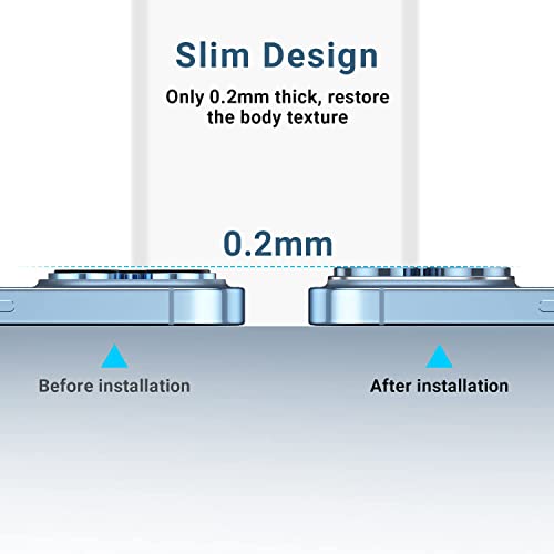 Easy to install: This Aluminum Alloy 3D camera lens screen protector for iPhone 13 Pro and iPhone 13 Pro Max is super easy to install, no tools are needed, just align the protector with the phone lens and press it securely. No fingerprints and no bubbles and no residual glue when removed.