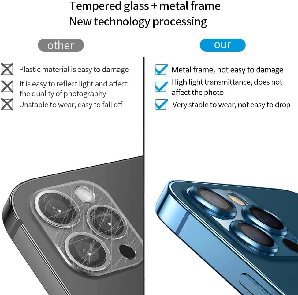 Personalized Decoration: Made of high-quality aviation aluminum metal ring and 9H tempered glass and inlaid with bling rhinestones to give your phone camera lens a stunning appearance, shining in the sun eye-catching and complimentary. The metal individual ring camera screen protector that covers each camera effectively protects the lens from falls, scratches and other accidental damage to your daily life.