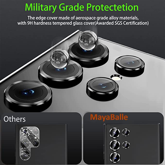 MAYA BALLE® Camera Lens Protector Compatible for Samsung Galaxy S23 Ultra, [Anti-Scratch] Premium Tempered Glass Film Aluminum Alloy Lens Ring Cover -Black