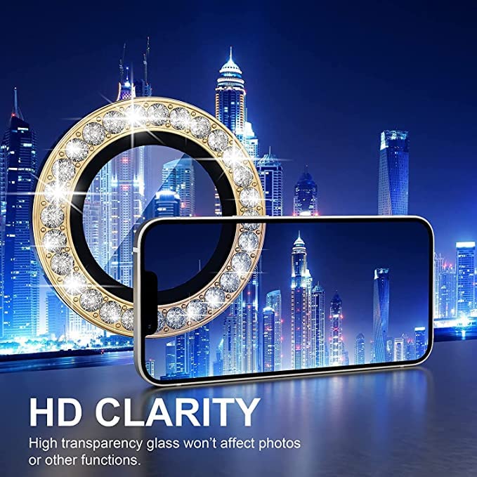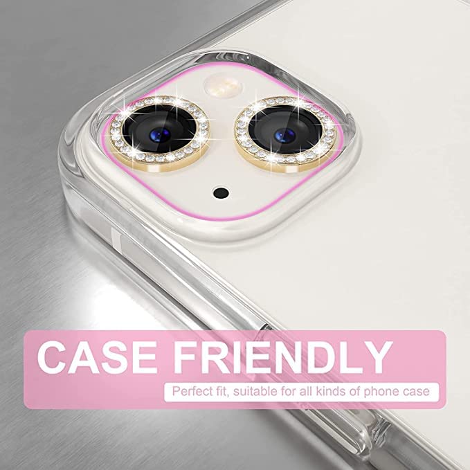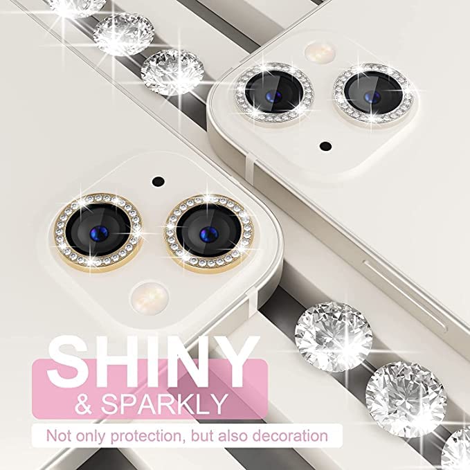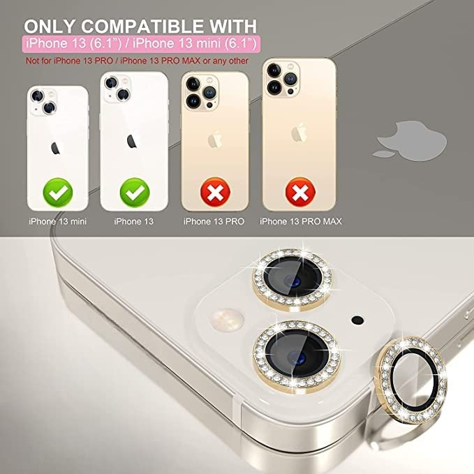 MAYBAL Diamond Camera Lens Protector for iPhone 13 / iPhone 13 Mini HD Clear Tempered Glass Screen Protection + Alloy Full Fit Lens Ring Cover | Case Friendly, Scratch Proof (Gold Diamond)