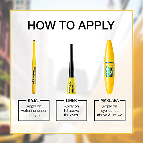 A waterproof and smudge proof Colossal eye liner, Bold, and intense formula lasts all day
