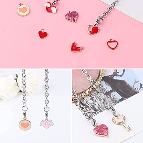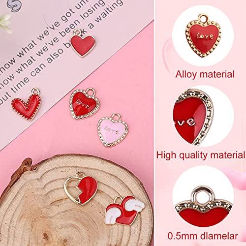 MAYCREATE® 50Pcs Enamel Charms for Jewellery Making Heart Shaped Pendants Set Mixed Bulk Metal Earring Charms Necklace Bracelet Charms for Jewelry Making and DIY Crafting