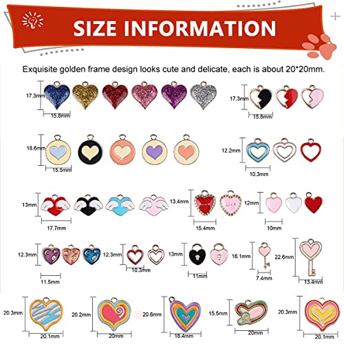 The set of charms come with 50pcs of assorted enameled heart-shaped pendants, each with a hanging hole for convenience.