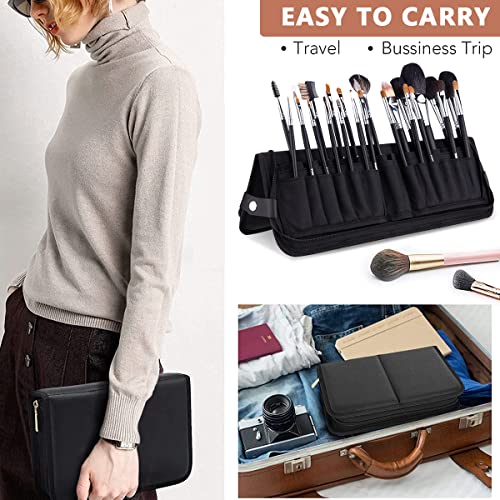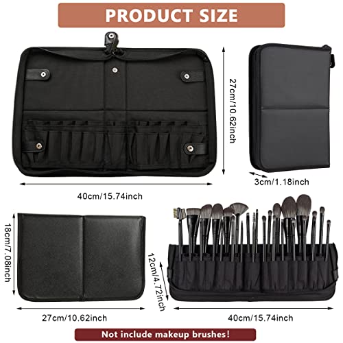 MAYCREATE® Makeup Brush Holder Bag Travel Portable Makeup Brush Organizer Case Foldable Zipper Cosmetic Brush Storage Pouch Stand with 29 Elastic Pockets (Black)