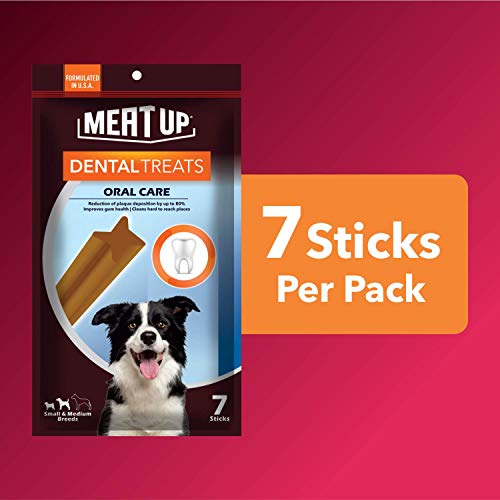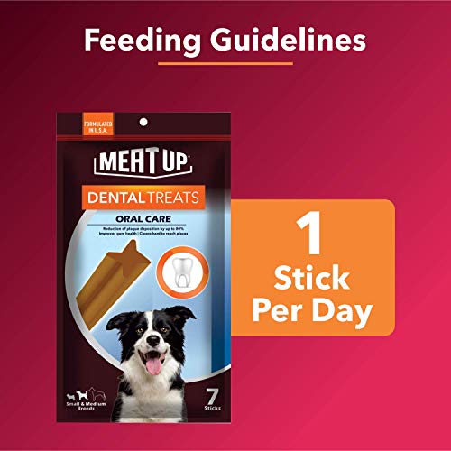 Meat Up Dental Treats, Oral Care Dog Treats For All Life Stages, Chicken Flavor- 7 Sticks, 165g (Buy 1 Get 1 Free)