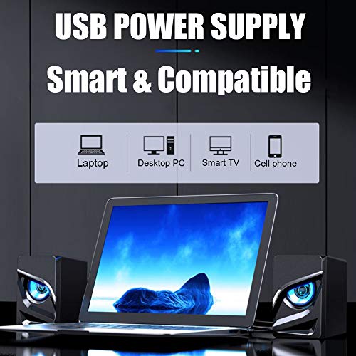 ★ These speakers with sharp eye are compatible with any audio device with 3.5mm stereo audio, like Smartphone, MP3 Player, Androids, Desktops, and Laptops.