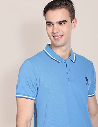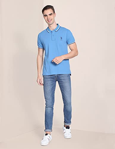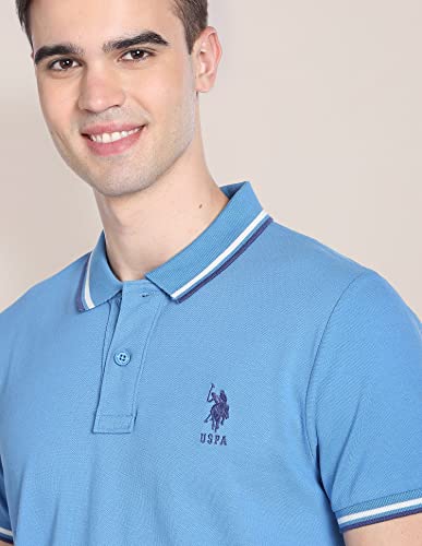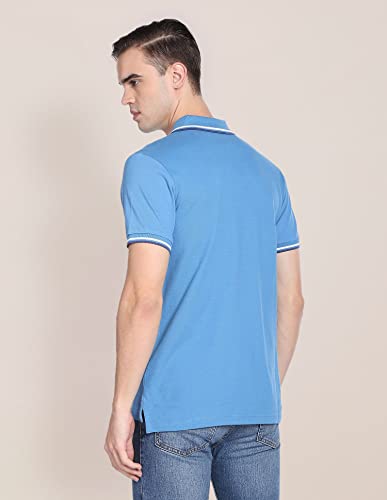Men Aqua Solid Cotton Polo Shirt