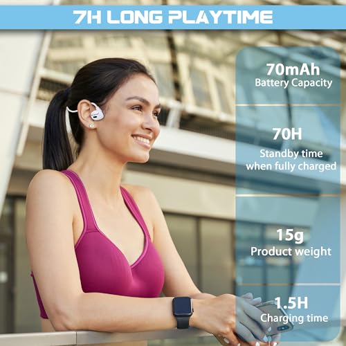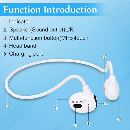 MH BRAND Open Ear Bluetooth Wireless Headphones with Mic, Bone Conduction Wireless Headset with 7H Playtime, IP55 Waterproof Sports Headphones for Running, Workout, Cycling