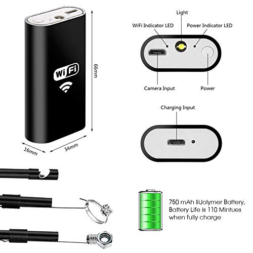 Stable Performance & Easy to Set Up – Without using extra adapter, cable,data traffic. The wifi box of wireless endoscope can transmit wifi, it can connect to multiple mobile phones at the same time, the picture is fluent and no obstacle. The only thing you need to download and install app application