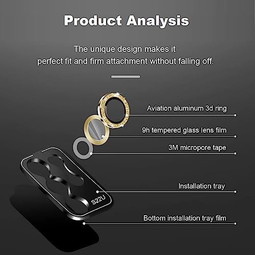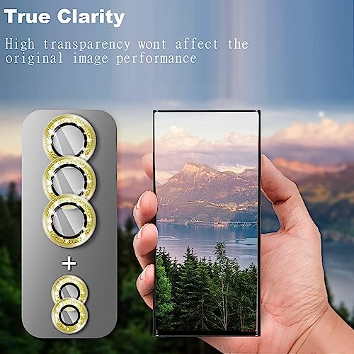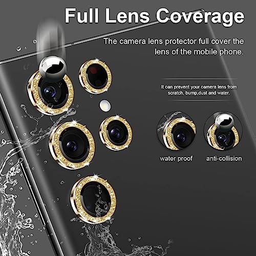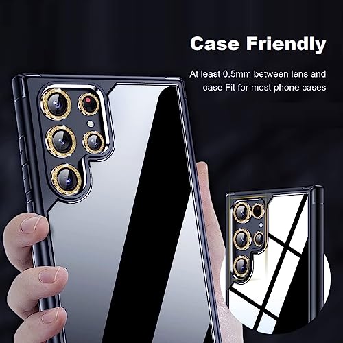Midkart Aluminum Alloy Camera Lens Tempered Glass Compatible with Samsung Galaxy S22 Ultra Metal Ring Anti-Scratch Bubble-Free Camera Lens Protector, Glitter Gold