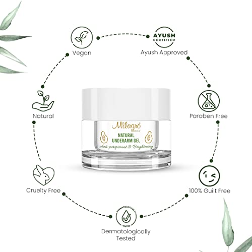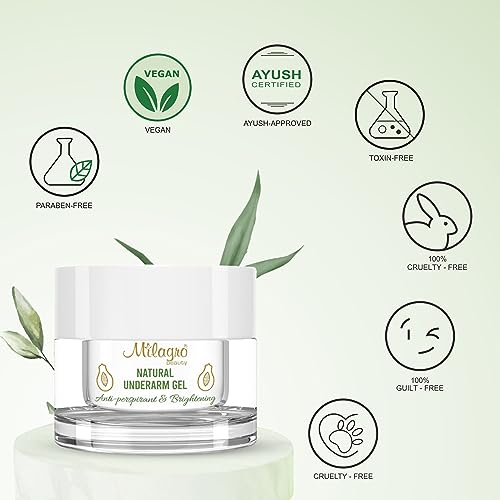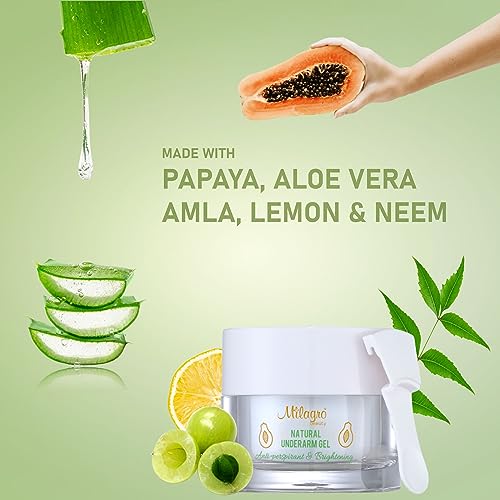 Milagro Beauty Natural Underarm Gel with Papaya, Aloe Vera & Tomato Extracts Anti-sweat Cooling & Brightening Formula Reduces Odor & Excessive Sweating (50gm)