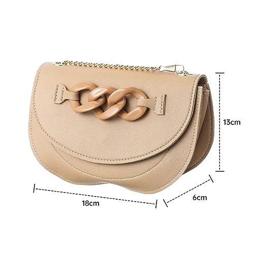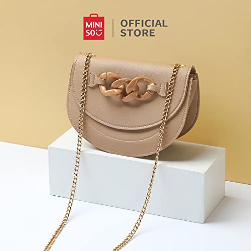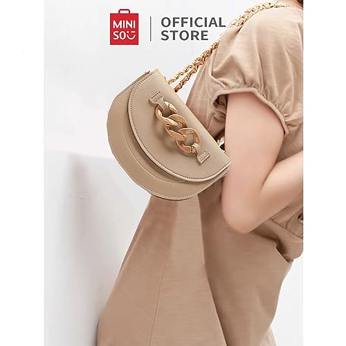 MINISO Sling Bag for Women, Classic Half Moon Solid Color Flap Buckle Women Crossbody Bag with Chain, Crossbody Purse, Small Size