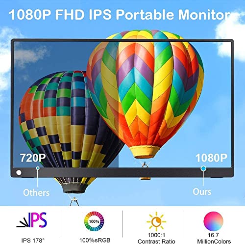 High Definition Picture: Laptop monitor has 1920x1080P, HDR rendering, changing your perception of color, redefining the visual feast, making the picture clearer and better visual effects. Weighing just under 500g this 15.6-inch portable monitor can be easily packed and taken with you wherever you go