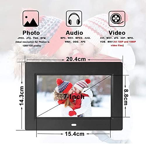 Miracle Digital 7”(17.78) IPS Digital Photo Frame High-Def.ScreenBuilt in 8GB Memory 2GB RAM 180°Wide Angle Viewing Video Audio Support SD USB Disk Card,Remote Photos SlideShow.