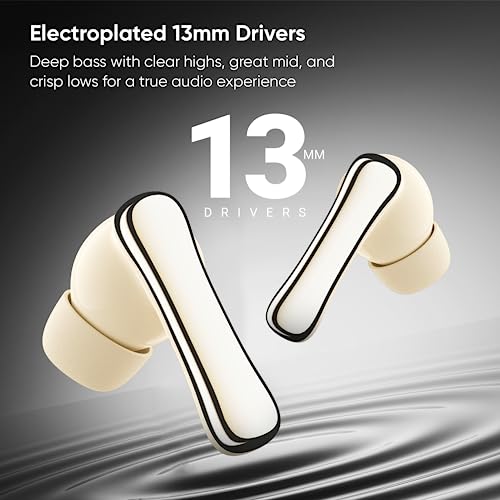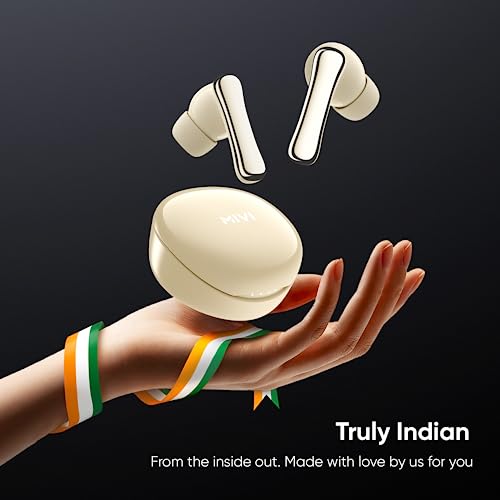 Mivi DuoPods A850 [Just Launched] TWS with HDCalls Technology, 13mm Rich Bass Drivers,50Hrs Playtime,Low Latency,Type C Fast Charging,Clear Audio Quality with AI-ENC,Made in India Earbuds-Ivory