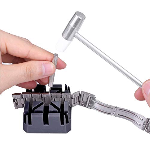 High quality: 16 PCS Professional Watchmaker Jewellery Repair Tool Kit Incl Watch Band pin Link Remover, Back Case Opener Screw Wrench for all kind of watch repair and inserting batteries Included: 3 x Precision slotted Anti magnetic Screwdriver, 1 x Link remover, 1 x Watch Band Pin Remover, 1 x Watch case holder, 1 x Metal and Plastic Hammer, 2 x Phillips Screwdrivers, 1x case knife, 1x Adjustable Back case opener 1x Stainless steel Tweezer, 3 x Pin Punch, 1 x Long nose Pliers with side Cutters Easy to use: This Watch repair tool is perfect for common watch trouble, like opening watch backs, watchband adjustment, changing watch batteries, gaskets, adjusting bands, Jewellery and more. Compatibility: Fit for almost all different sizes. Fit almost all Watches from 18mm up to 50 mm Diameter High quality: Professional 16 PCS Watchmaker Repair Tool Kit Item in Stock!