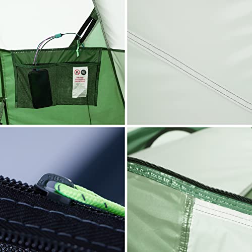 All-round protection: 190T PU material provides 1000mm water resistance and excellent UV resistance. Equipped with Rainfly, Our double layer tent provides stronger resistance to harsh weather.