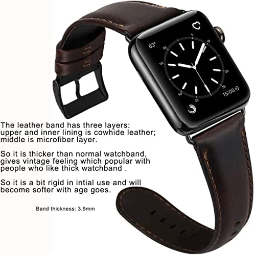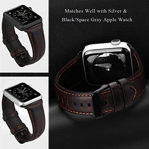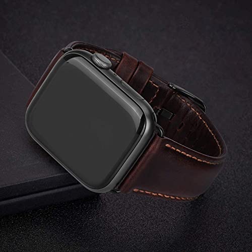MOROFY Genuine Leather iwatch Strap Vintage Replacement Bands for Apple Watch Straps Series Ultra | 8 | 7 | 6 | 5 | 4 | 3 | 2 | 1 (49mm | 45mm | 44mm | 42mm) – Coffee Brown [Watch Not Included]