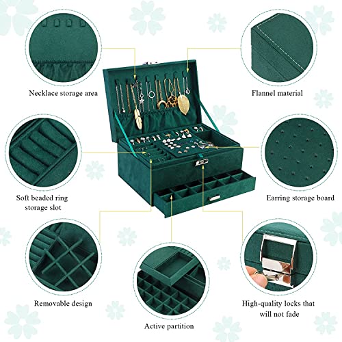 【VINTAGE STYLE】: The Flannel Jewelry Box Features A Vintage Style; Dark Green Color, Soft Velvet Cover Make It Elegant, Low-key, Mysterious, And Charming; You Will Be Immersed In Its Beauty The Sight Of It. It Can Display Your Individuality And Your Taste, Leave A Deep Impression On Everyone Who See It.