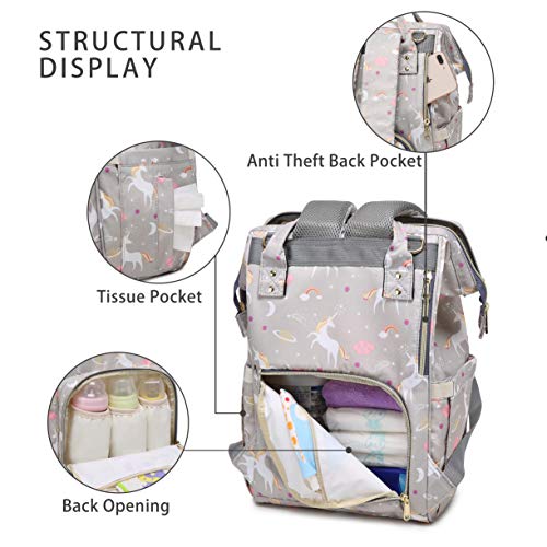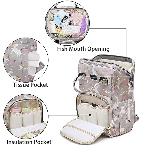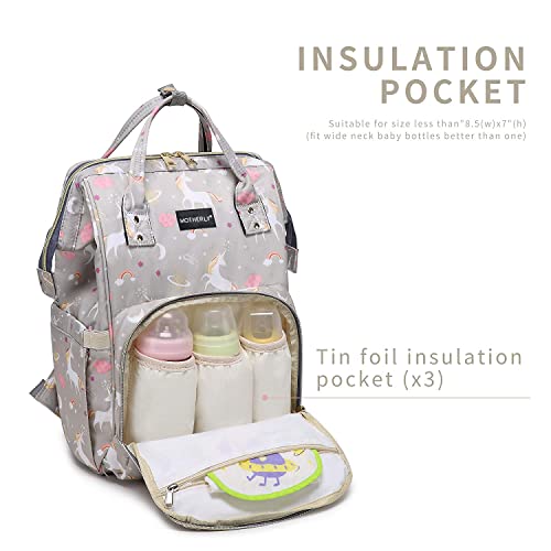 motherly Baby Diaper Bag, Mothers Maternity Bags for Travel (Unicorn Gray)