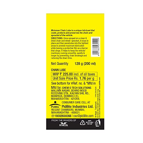 Motomax Chain Lube Aerosol Spray 200 ml |Provides Lubrication and corrosion protection of Chain & sprockets for Bikes, Motorbikes, Cars| Avoid Sling Off & Prevent Chain breakage | Extended Chain Life