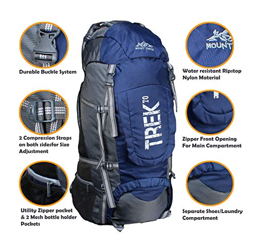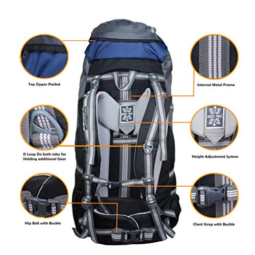 Mount Track Gear Up Rucksack, Hiking & Trekking Backpack 70 Ltrs with Rain Cover and Front Opening