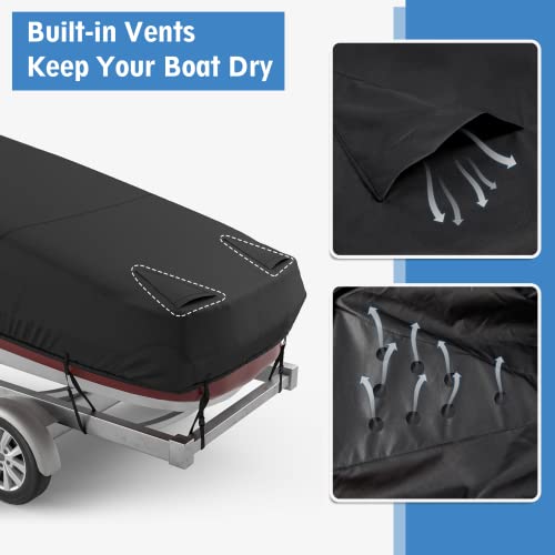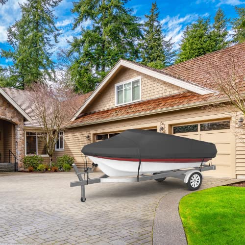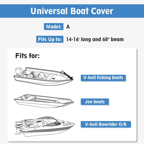 MR.COVER Waterproof Boat Cover for 14-16 ft V-Hull, Beamwidth Up to 68 Inch, Fits Fishing Boat, Jon Boat, and Bowrider O/B, Heavy-Duty 600D Marine-Grade Polyester, Black