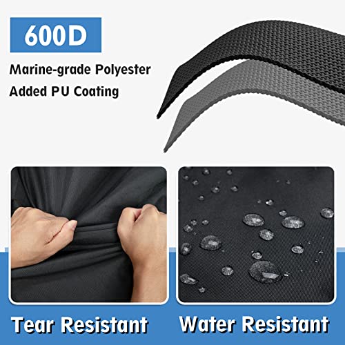 【Weatherproof Material】 Durable 600D marine-grade polyester coated with PU for higher water resistance and anti-UV features to provide dependable protection for your boat from all harsh weather.