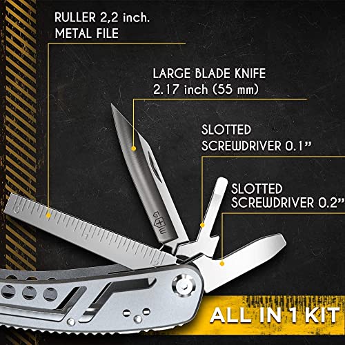 Compact multifunction all in 1 kit – for Camping, Hiking, Backpacking, Fishing. Work Tools. It is easy to use multi tool as a car or bike repair tools pliers.