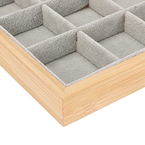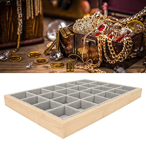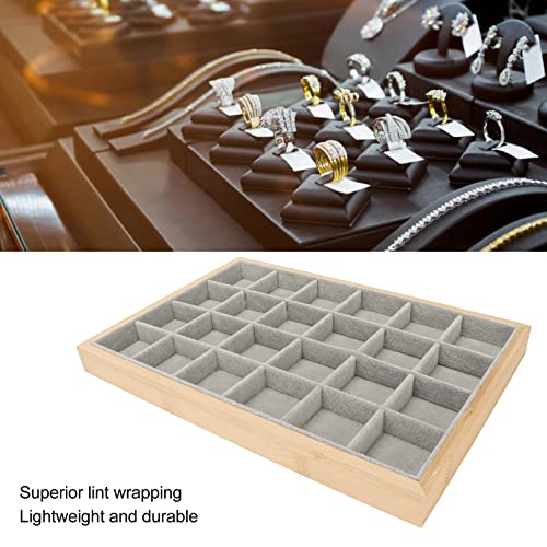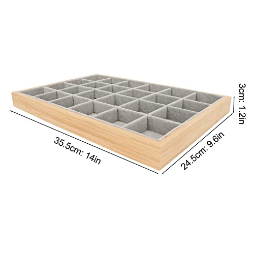 Multipurpose Stylish Wooden Jewelry Storage Tray 24 Grid Scratch Resistant Soft Jewelry Watch Bracelets Jewelry Tray (Grey)
