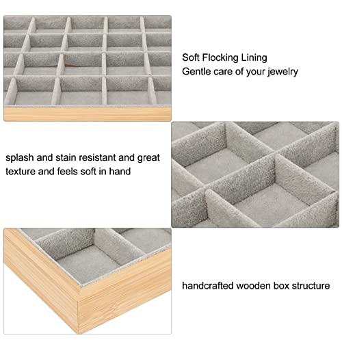Premium Material: 24 grids jewelry tray is made of sturdy firm wood boards and wrapped in premium lint for light weight and durability.