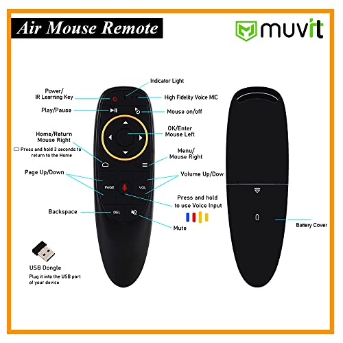 Muvit Voice Remote Air Mouse, 2.4G Wireless Infrared Remote Control with 6 Axis Gyroscope and IR Learning, Air Fly Mouse with Voice Input for Android TV Box/PC/Smart TV/HTPC/Projector and More