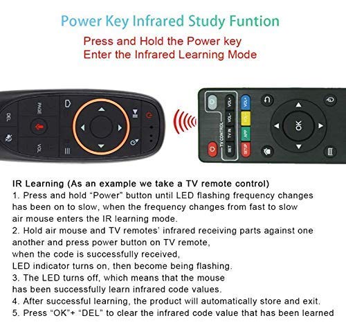 IR LEARNING: The fly air mouse remote Power Key can programs.Convenience to control all your devices in one, if you have any problem when using the IR learning function,please read the product description and welcome to ask us for help.