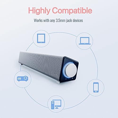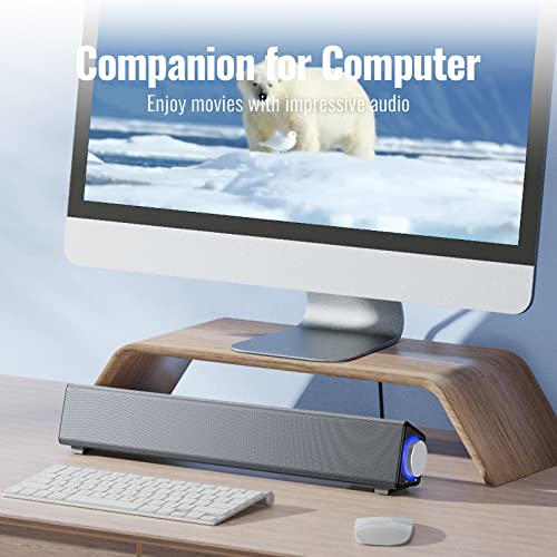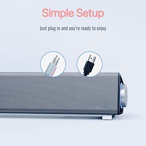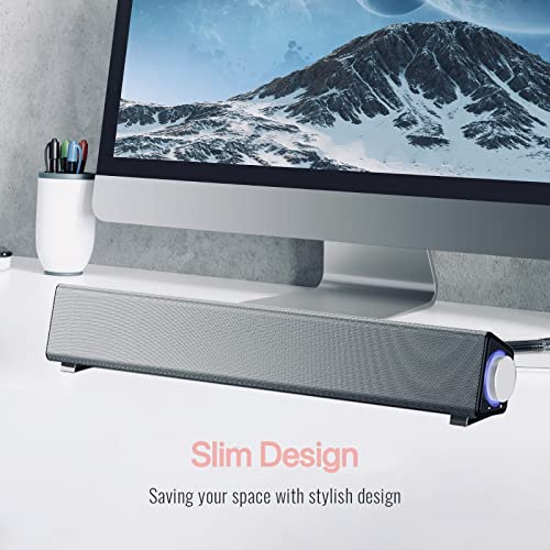 NA Computer Speakers for Desktop, Stereo USB Powered Mini Soundbar, Wired Computer Sound Bar, Computer Speaker for PC Tablets Desktop Cellphone Laptop, PC Soundbar, Silver