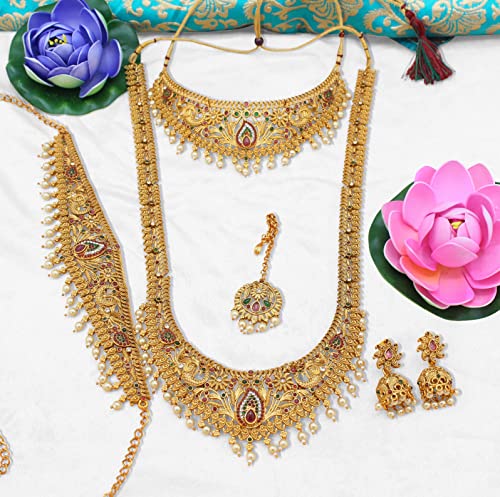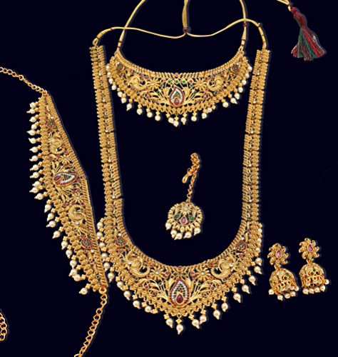 Nagneshi Art-Adorable Gold Plated r Necklace Set for Women,Matte Finish Bridal Jewellery Set, Wedding Collection Necklace Earring, for Women-2 Neckless, 1 Pair Earring, 1 Maang Tikka