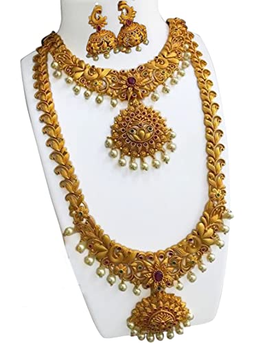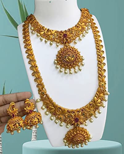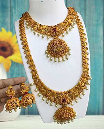 Nagneshi Art- Necklace Set for Women,Matte Finish Bridal Jewellery Set, Wedding Collection Necklace Earring, for Women-2 Neckless, 1 Pair Earring