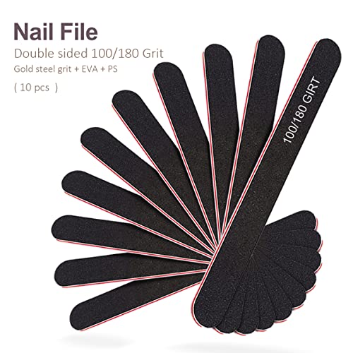 Nail File and Buffer Set,Nail Care Tools,2pcs 4 Way Nail Buffing Block Polishing Shine Nail,&10pcs Double Sided 100/180 Grit Nail File Emery Board Filer Black Manicure Tools