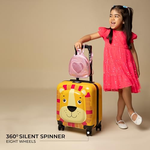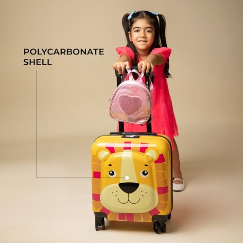 Nasher Miles Tic Tac Toe Zoo Lion Hard-Sided Polycarbonate Cabin Luggage Yellow 17 Inch|44cm Kids Trolley Bag