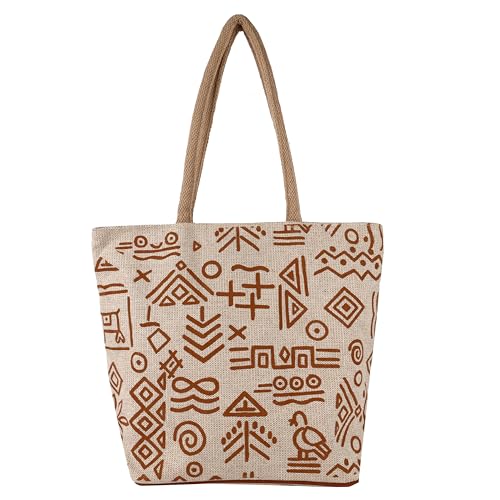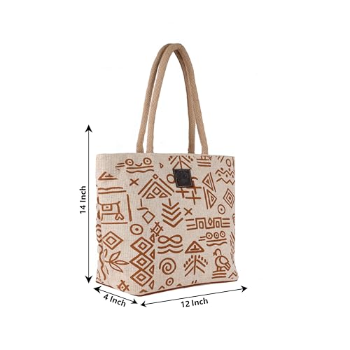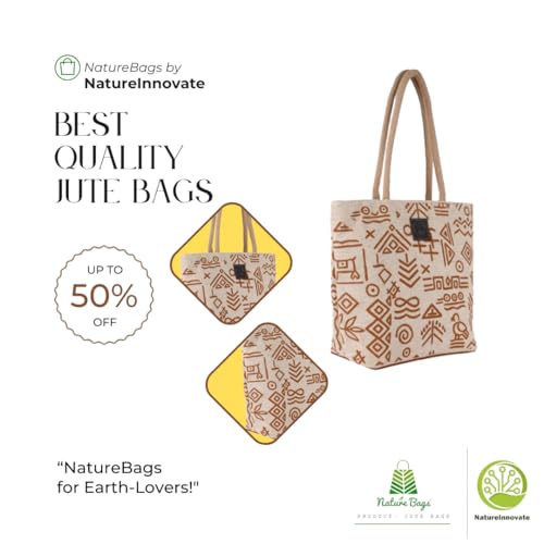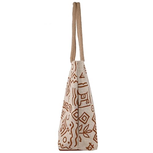 NatureInnovate NatureBags Asthetic Art Jute Canvas Juco Everyday use Shopping and Multipuropse Fashion Handbag with Zip Closure for Women with Shoulder Strap- Retro Brown