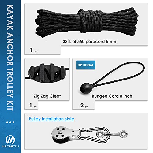 Necmetu Kayak Anchor Trolley Kit – 316 Stainless Steel Heavy Duty Deluxe Anchor Trolley System for Kayak, Anchor Accessories