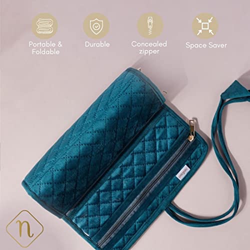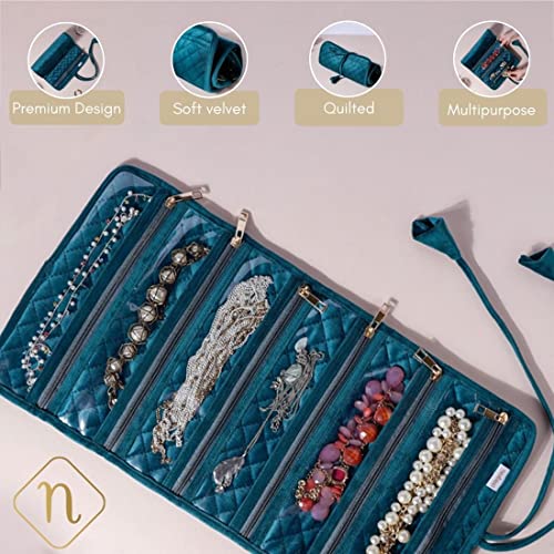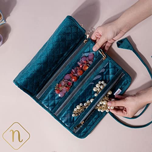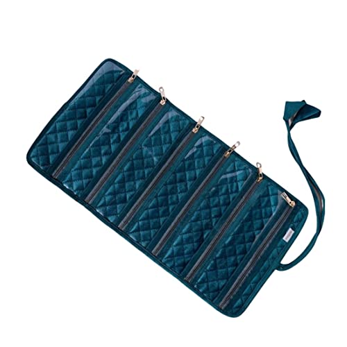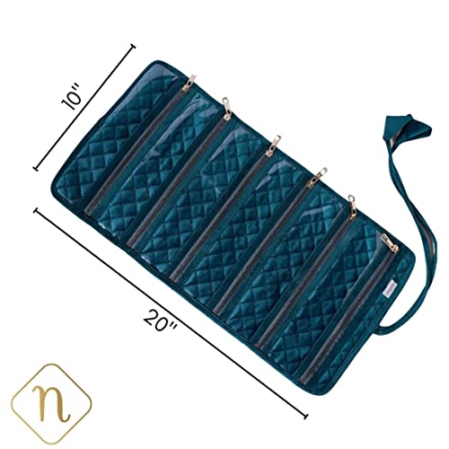 Nestasia Green Portable and Foldable 6-Compartment Velvet Jewellery Organiser Roll Pouch | Smooth Finish, Perfect for Gifting (10 x 20 Inch)
