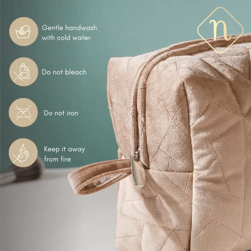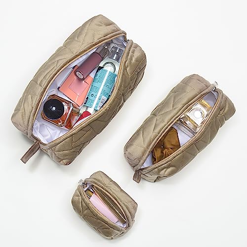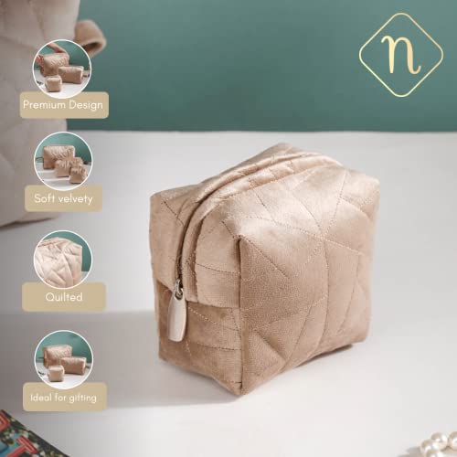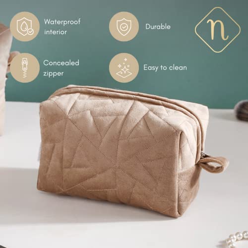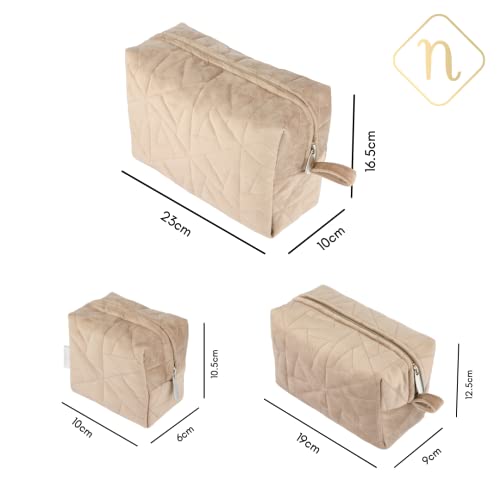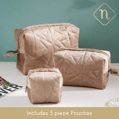 Nestasia Makeup Pouch, Organizer, Kit – Beige | Perfect for Makeup Brush Set, Toiletry Kit, Lipsticks, Foundation, Bathroom Accessories | Quilted Pouch for Girls | Different Sizes (Set of 3)