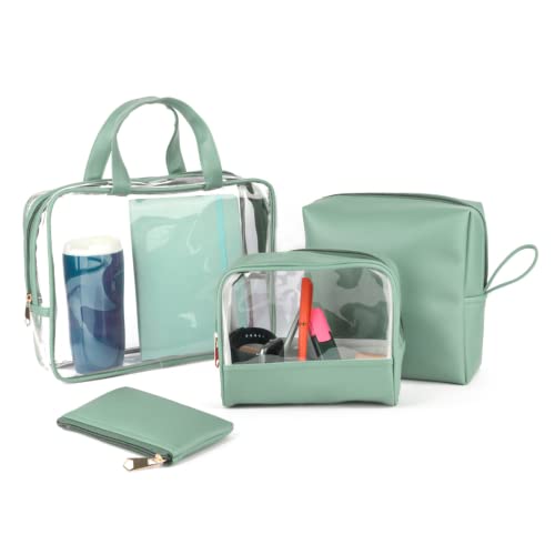 Design: The travel bag kit set of 4 is sleek, stylish, and spacious for toiletry essentials. It includes a large transparent bag and three pouches of different sizes.