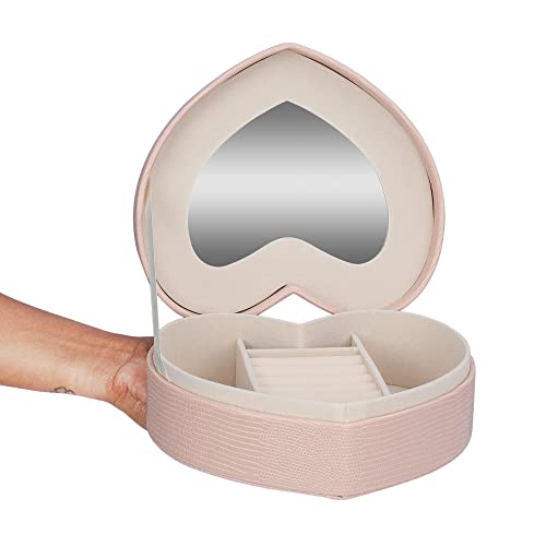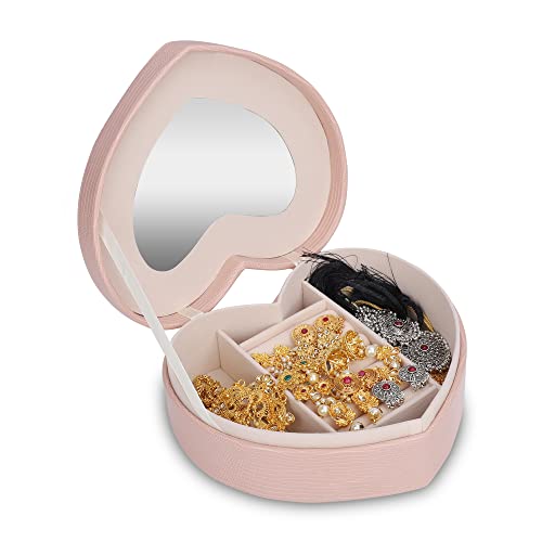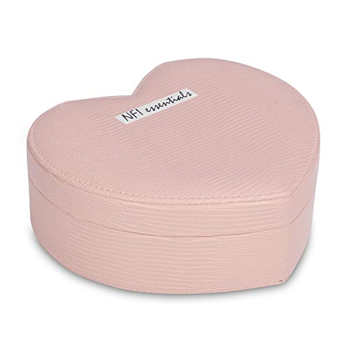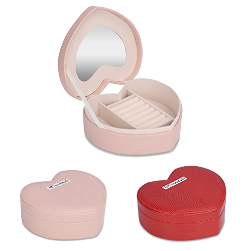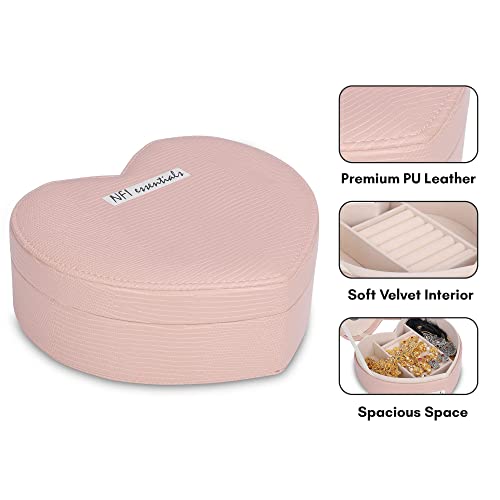 NFI essentials Faux Leather Heart Shape Mini Pu Travel Jewelery Storage Box, Small Organizer Display Storage Jewellery Case For Ring, Pendant, Earring, Necklace, Bracelet (Pink)